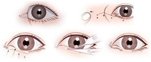2、“L”形皮膚切除術:此法适用于輕度倒向(xiàng)型内眼角贅皮;